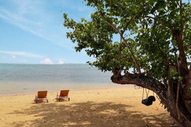 This traditional Fare offers a postcard-perfect setting on 1,500 m² of unspoiled nature. A path of white stones leads you straight to your private beach, shaded by lush trees and equipped with comfortable loungers — the ideal spot to watch the sun melt into the turquoise horizon.
