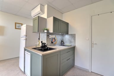 Entirely renovated, the studio features a contemporary and refined atmosphere. The layout has been carefully redesigned to optimize every square meter while maintaining a true sense of space and comfort. The bright and welcoming living area invites you to unwind after a day spent exploring beaches, hidden coves, or Ajaccio’s historic center.