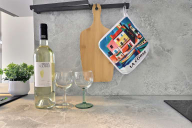 The modern, fully integrated kitchen allows you to enjoy complete independence during your stay, combining functionality with sleek design.