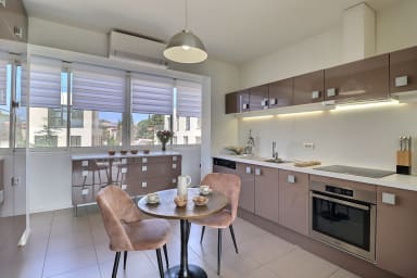 Designed to comfortably accommodate stays for couples, families, or friends, the apartment features two bedrooms, each furnished with a queen-size bed (160 cm), offering everyone a true space to unwind. The living area, both welcoming and filled with natural light, extends this sense of well-being, while the overall setting encourages you to slow down, enjoy the southern light, and savor every moment between urban escape and peaceful retreat.