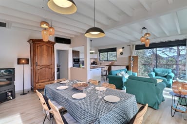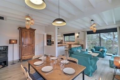 Construite en bois, cette villa contemporaine est neuve et pensée dans les moindres détails pour offrir une atmosphère à la fois élégante et chaleureuse. La décoration intérieure, résolument contemporaine, a été soigneusement imaginée pour vous procurer un sentiment immédiat de bien-être. Plusieurs terrasses, aménagées avec goût, prolongent les espaces de vie vers l’extérieur, à l’ombre des pins.