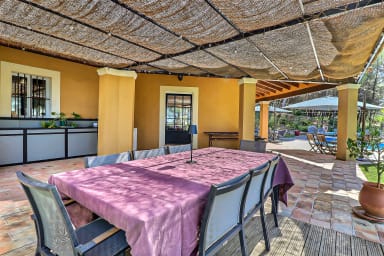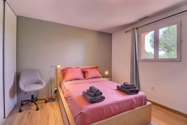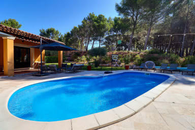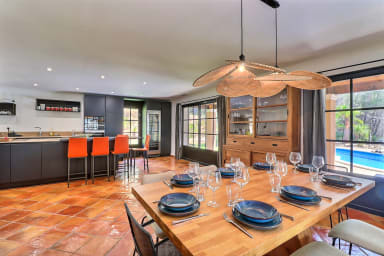 À l’extérieur, laissez-vous séduire par une piscine privative bordée de transats, entourée d’un jardin arboré où règnent calme et intimité. Sur la terrasse, contemplez la vue dégagée tout en savourant la douceur du climat méditerranéen. Ce cadre enchanteur invite à des journées de farniente ou des soirées animées sous les étoiles.