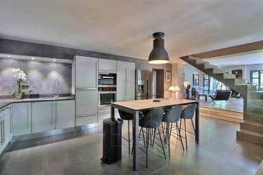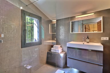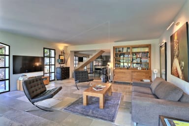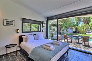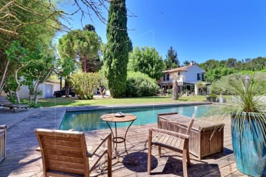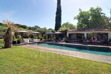 Le jardin, véritable écrin de verdure ponctué d’essences méditerranéennes, accueille une belle piscine bordée de bois, un pool house aménagé, ainsi que plusieurs zones ombragées propices à la détente. Chaque espace extérieur a été pensé pour offrir une expérience de séjour immersive, entre nature, raffinement et douceur de vivre.