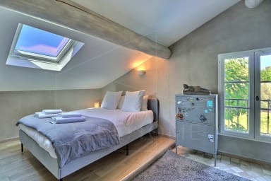Il y a des lieux qui racontent une histoire avant même qu’on y pose les valises. Ce mas provençal du XVIIIe siècle, restauré avec une rare élégance, en fait partie. Niché à quelques minutes d’Aix-en-Provence, au cœur d’un hameau typiquement provençal, il se dévoile comme un refuge hors du temps, où l’authenticité dialogue avec le confort contemporain.